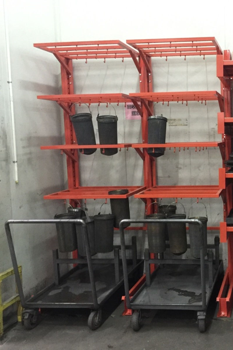 經過多次溝通和實地考察測量,最后設計出一款滿足客戶多方面要求的貨架產品。不僅有掛鉤,有層板,還有充分的位子放置推車,完美解決客戶難題。蘇州貨架廠家。
