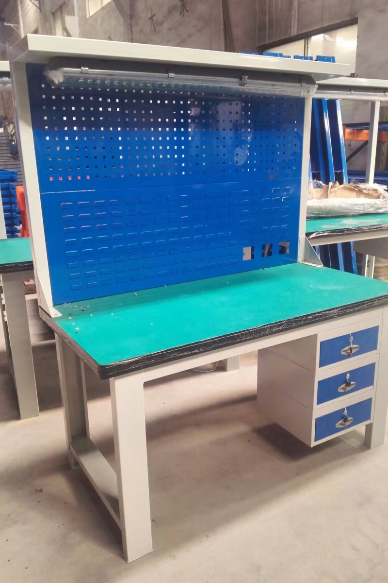 學習中人人都有一張學習工作桌,辦公場地也離不開工作臺的身影,辦公室、車間、流水線等場地。所以一張好的工作桌應該如何分類呢?工廠內,工作桌一般就分為兩類:輕型工作桌和重型工作桌。輕型工作桌就是常規材料方管或者圓管焊接而成,可以三面分板,頂部再鋪一張臺面,臺面有很多品種,櫸木的、原木的、包邊的、防靜電的、刷漆的等等。還可以配一些抽屜作為儲物使用,或者滑槽抽板放一些鍵盤、常用零配件等。重型工作桌的種類就多了,常規使用C型鋼焊接或者槽鋼材料焊接。背板、掛板都可以根據需求定制,一起安裝在工作臺面上,還會配第二層臺板,大致20-30cm左右。日光燈照明或者防爆燈系列等。