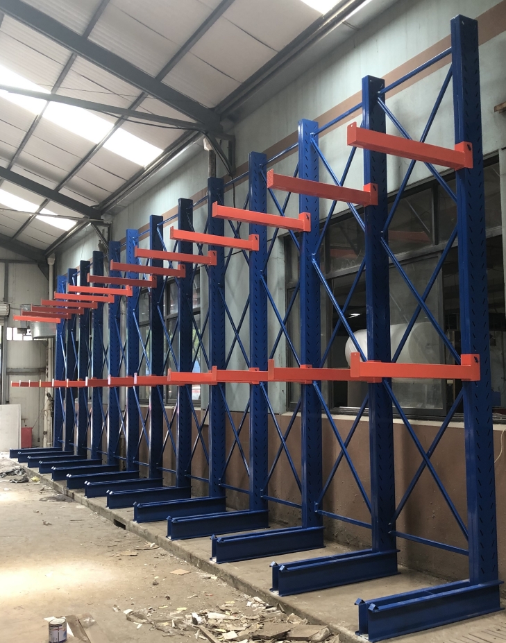 長條形的原材產品如果直接放在地上,會導致產品出現擠壓變形以及拿取困難等現象。我們解決這一難題的制作方法就是改變其存儲方式,制作一款懸臂式貨架作為存放架。可以有效區分每一種產品的品類以及方便清點數量;存取時也十分便利,可以通過叉車或者行車。料與料之間不會相互擠壓變形,出現損壞導致經濟損失等情況。