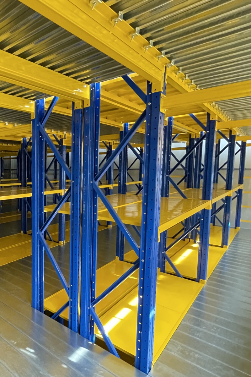 閣樓式貨架通常使用重型或者中型立柱作為主要承載支撐,可以安裝2層、3層、4層樓面,根據廠房高度以及客戶需求制作安裝。中間采用合適的橫梁和層板用于滿足載重要求,過道鋪設鍍鋅鋼樓板或者花紋鋼樓板,也有鋼格柵樓板多種選擇方式。便于存儲一些多品類的、規格化的、多量化的中小型物件。同時有樓板的加入也便于人工進出貨,就像平面一樣,也可使用小型推車上下貨。下面看下實拍圖: