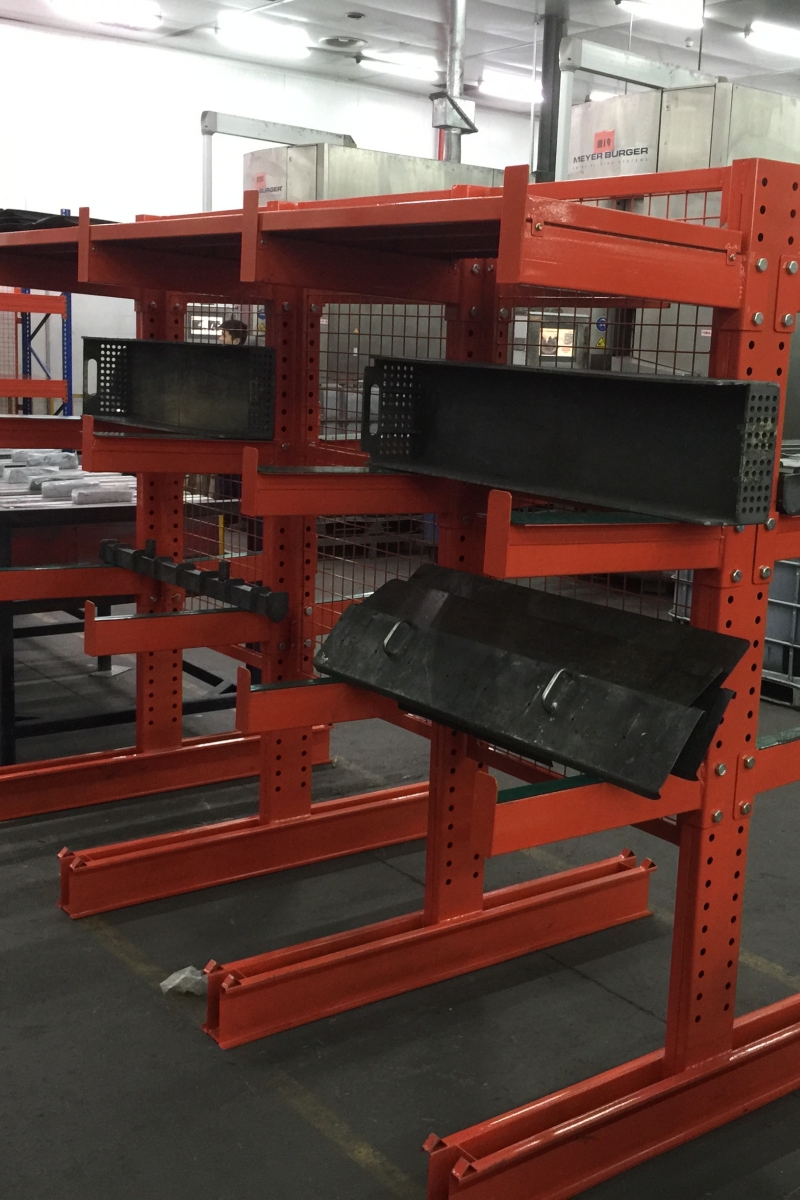 掛鉤式懸臂貨架,相對普通懸臂貨架來說,需要了解客戶用途,不同的掛鉤距離、尺寸都是非標定制的,根據需要焊接在不同的位置上。比如一些料筒、漏斗等非標件都需要做到6S的存放標準。