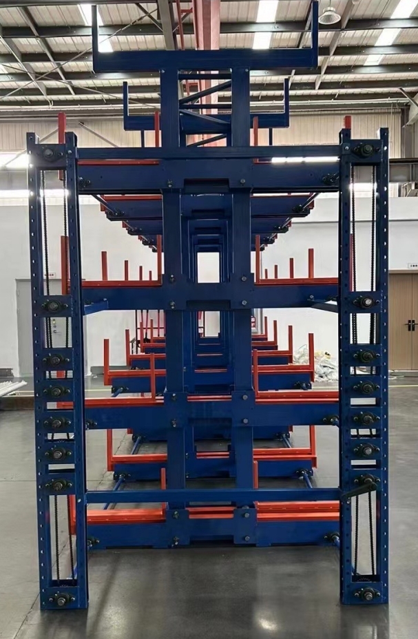 伸縮懸臂式貨架是一種高效利用空間、提高存取靈活性的倉儲(chǔ)設(shè)備,尤其適用于存放長條形、管材、板材、型材等不規(guī)則或超長貨物。它的工作原理主要基于以下幾個(gè)核心部分和動(dòng)作: