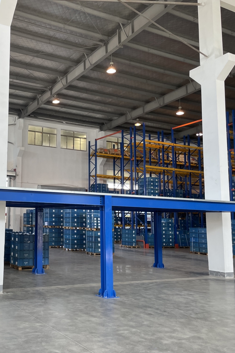 首先由于企業的蓬勃發展,為了擴大倉庫的使用面積,選用安裝兩層或者三層的鋼制平臺還使得倉庫一分為三,場地分為三層使用,不僅取消了貨架過道,并且使得大小托盤通用化了。從而大大提高了倉庫的利用率。