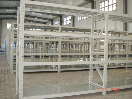 單元貨架每層載重量一般在200~800 kg之間,總承載一般不大于5000kg。單元貨架跨度通常不大于2.6m,深度不大于1m,高度一般在3m以內。如果單元貨架跨度在2m以內,層載在500kg以內,通常選無梁式中型擱板式貨架較為適宜;如果單元貨架跨度在2m以上,則一般只能選有梁式中型擱板式貨架。無梁式中型貨架與有梁式中型貨架相比,層間距可調余地更大,更穩固、漂亮,與環境的協調性更好,更適于一些潔凈度要求較高的倉庫;有梁式中型擱板式貨架則工業化特點強一些,較適用于存放金屬結構產品。中型擱板式貨架應用廣泛,適用于各行各業。