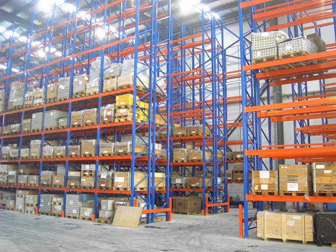 重力式貨架為使下滑流暢,如坡道較長,應在中間加設阻尼裝置,為使托盤貨物下滑至最底端時不致因沖擊力過大而傾翻,應在坡道最低處設緩沖裝置和取貨分隔裝置,因此設計、制造、安裝難度較大,成本較高。此類貨架不宜過高,一般在6m以內,單托貨物重量一般在1000kg以內,否則其可靠性和可操作性會降低。此類貨架系統目前在國內應用不是很多。