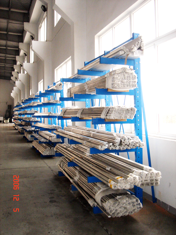 懸臂式貨架貨物存取由叉車、行車或人工進(jìn)行。貨架高度通常在2.5米以內(nèi)(如由叉車存取貨則可高達(dá)6米),懸臂長(zhǎng)度在1.5米以內(nèi),每臂載重通常在1000kg以內(nèi)。此類貨架多用于機(jī)械制造行業(yè)和建材超市等。懸臂式貨架主要用于存放長(zhǎng)形物料,如型材、管材、板材、線纜等,立柱多采用H型鋼或冷軋型鋼,懸臂采用方管、冷軋型鋼或H型鋼,懸臂與立柱間采用插接式或螺栓連接式,底座與立柱間采用螺栓連接式,底座采用冷軋型鋼或H型鋼。