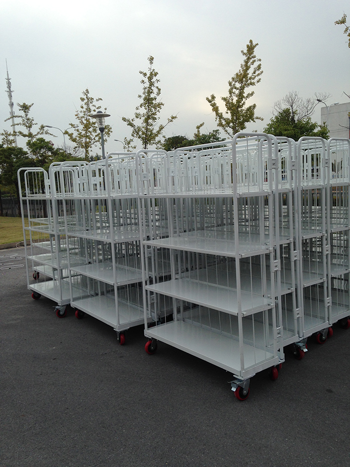 物流臺車存放的產品陳列醒目,在運輸中:一方面對物料的安全起到保護作用。另一方面不會使已分揀配備好的產品導致雜亂。裝卸十分省力;輪子通常設計為兩只定向輪,兩只萬向輪以方便人工推行。物流臺車可依據貨物設計承載重量。