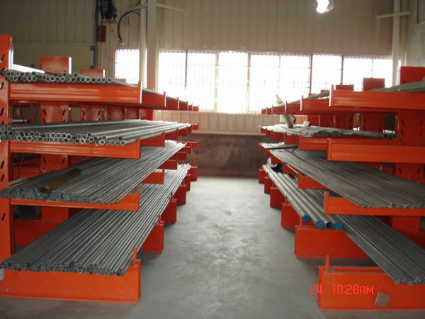懸臂式貨架適用于存放長物料、環(huán)型物料、板材、管材及不規(guī)則貨物。懸臂式貨架立柱多采用H型鋼或冷軋型鋼,懸臂采用方管、冷軋型鋼或H型鋼,懸臂與立柱間采用插接式或螺栓連接式,底座與立柱間采用螺栓連接式,底座采用冷軋型鋼或H型鋼。貨物存取由叉車、行車或人工進(jìn)行。貨架高度通常在2.5米以內(nèi)(如由叉車存取貨則可高達(dá)6米),懸臂長度在1.5米以內(nèi),每臂載重通常在1000KG以內(nèi)。