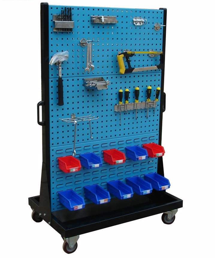 物料整理架物是以方孔掛板和百葉掛板為主要部件,結合背掛零件盒、掛鉤、棚板等多種配件使用。對您生產現場的小型少量多樣的工具、物料進行分類存放、方便搬運歸位、充分利用空間,整潔高效。